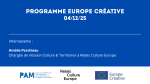9 décembre 2025, par PAMWebinaire dédié aux dispositifs européens du programme Europe Créative : appels Mobilité, Coopération, et Culture Moves Europe.