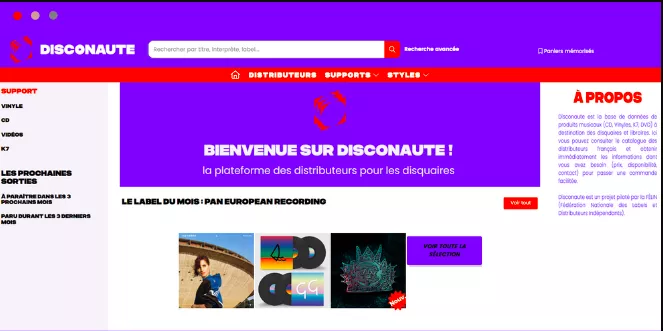 Disconaute est la base de données des produits musicaux (CD, Vinyles, K7, DVD) à destination des disquaires et libraires*. Développée avec Tite Live, elle recense le catalogue de tous les distributeurs français avec des informations exhaustives (prix, disponibilité, contact) pour une relation commerciale facilitée.