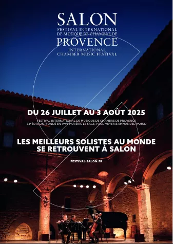 Depuis 1993, le Festival International de musique de chambre, SALON, est organisé par la dream team composée du pianiste Éric Le Sage, du clarinettiste Paul Meyer et du flûtiste Emmanuel Pahud. Cet événement est tout simplement une étape essentielle sur la route des festivals en Provence. Emmanuel Pahud est une légende vivante de sa flûte, Éric Le Sage a un toucher velouté miraculeux, et Paul Meyer une virtuosité ailée. Pour le festival, ils s’entourent de leurs amis musiciens, de grands solistes ou de jeunes talents en devenir. C’est un privilège et un bonheur pour tous de jouer avec ces trois fantastiques !
