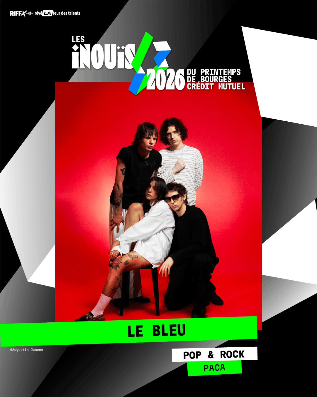 LE BLEU est un groupe de rock indépendant originaire de Toulon, inspiré par Fontaines D.C., Zed Yun Pavarotti ou Feu ! Chatterton. Le groupe se distingue par un son mêlant poésie brute et puissance sonore, et avec une énergie scénique unique, qui puise dans le rock britannique et irlandais. Résolument tourné vers l’avenir, le groupe ambitionne de marquer la scène rock française et internationale.